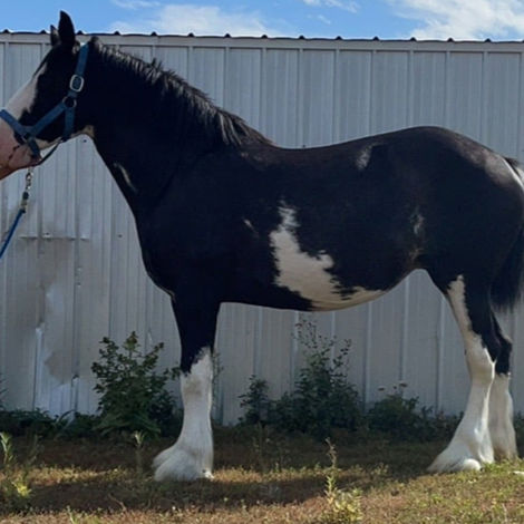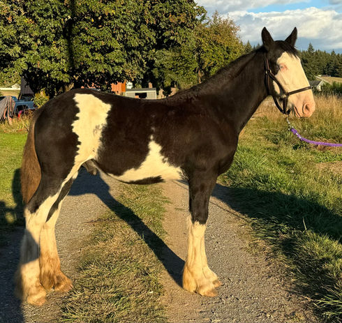 Zoro is our young stallion prospect. He is registered with the American Shire Horse Association (ASHA: 23895-S). We expect him to mature around 18H. He is negative for 15 diseases through parentage, and tested negative for MYHM (IMM). He is homozygous dominant extension (black) through parentage and carries one copy of W20.